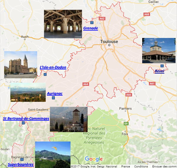 Aurignac - Grenade - L'Isle-en-Dodon - Revel - St-Bertrand de Comminges - Superbagnères